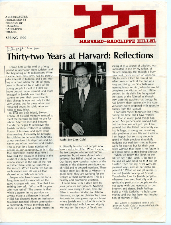 Hillel_newsletter_Spring1990 Published July 27, 2016 at 600 × 790 in From the Archives ← Previous Next → Spring 1990 Harvard-Radcliffe Hillel newsletter, reflections upon retirement Like Loading...